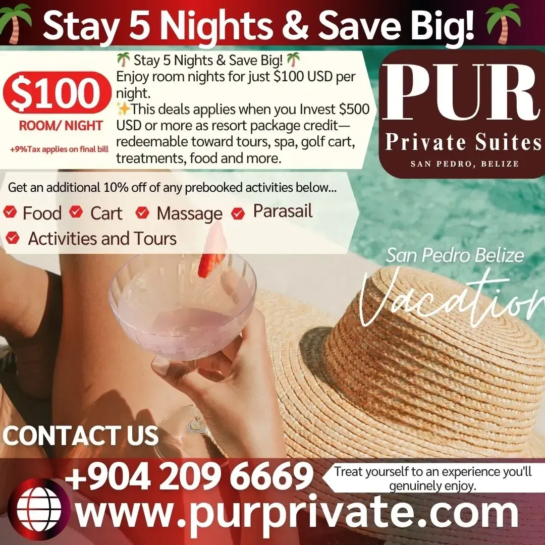 The beauty of booking your stay at PUR Private is that you can vacation your way, while still having the opportunity to take advantage of the amenities at both of our sister properties, Bella Vista Resort and Pur Boutique Cabanas.
